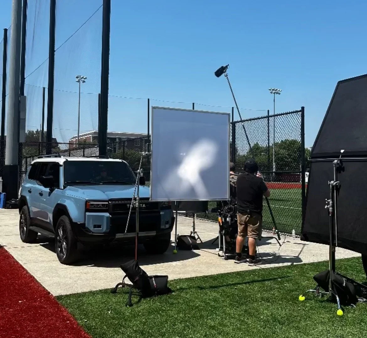 The challenges the team faced when filming the next phase were completely different. But an earthquake, a “fireball” meteor, and brutally hot temperatures were simply distractions from the job at hand - filming NFL Legend Jim Plunkett, New England Patriots’ player Christian Gonzalez, and Mexican flag football champion Diana Flores. Ahern Memorial Stadium in Bayonne, NJ was the backdrop for some very fun content including the Toyota “Driving a Legend” series which had our three talented athletes chatting during a spin in the Land Cruiser.